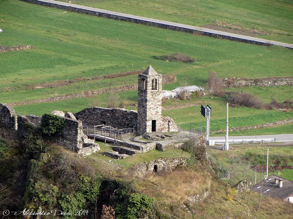 In posizione dominante sul promontorio che sovrasta i paesi di Grosotto e Grosio sorgono il Castello di S. Faustino, detto anche Castello Vecchio, e il Castello Visconti Venosta noto anche come Castello Nuovo (da me già trattatto qui https://castelliere.blogspot.com/2014/02/il-castello-di-lunedi-10-febbraio.html), ora compresi nel Parco delle incisioni rupestri di Grosio e facilmente raggiungibili a piedi in breve tempo. Percorrendo la cresta del dosso roccioso fino alla sua estremità occidentale si raggiunge il castello più antico, di minori dimensioni, che aveva funzione unicamente difensiva, come si presume dalla relativa angustia del fabbricato, costretto a seguire la morfologia dell’altura. L'edificio, realizzato attorno al X-XI secolo, è comunemente citato come Castrum Grosii o Castello di S. Faustino, dal nome del martire romano al quale venne dedicata, insieme a S. Giovita, la cappella castellana. Doveva trattarsi comunque di un punto strategico importante come attesterebbe un interessante documento del 1150. Il Vescovo di Como Ardizzone, dal quale dipendeva tutta la pieve di Mazzo con le relative fortificazioni, sottrasse ad Artuico Venosta il castello di Grosio per darlo al più fidato Bertario de Misenti. Solo successivamente nel 1187, placate le contese, il Vescovo Anselmo reinvestì Egano Venosta dei castello con una rendita di 60 moggie di grano da esigersi in Grossura (poi divenuta Grosio). Da allora competè alla famiglia Venosta la custodia di questo castello e anche della nuova struttura costruita nel XIV secolo. I resti murari conservati permettono di riconoscere il perimetro del castello e di alcune strutture ad esso pertinenti, come l'abside semicircolare della chiesa castellana dei SS. Faustino e Giovita. Tra queste svetta il campaniletto romanico, restaurato nella parte superiore verso la fine dell'800. Ai suoi piedi figurano due sepolcri scavati nella roccia di datazione ancora incerta, ma riferibili ad un edificio preesistente al castello stesso (oratorio del VII-VIII sec. d.C.?). Altri link consigliati: https://www.youreporter.it/video_il_castello_di_san_faustino_o_castello_vecchio_a_grosio_so/?refresh_ce-cp (video di fotophoro), https://digilander.libero.it/archeol/37Grosio14.html (notizie storiche sul castello)